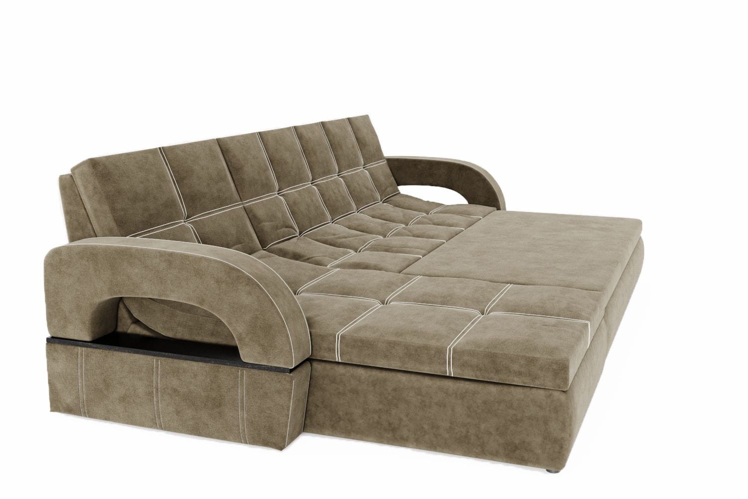 Особенности дивана: Каркас: ЛДСП, фанера, брус. Эргономичная мебель, позволяющая создать стильный интерьер. Обит качественным и плотным текстилем. Опорные элементы каркаса помогают равномерно распределять вес, благодаря чему напольное покрытие не продавливается. Механизм трансформации позволяет быстро и без особых напряжений превратить диван в удобное спальное место. Глубина дивана без учёта оттоманки: 1050 мм.